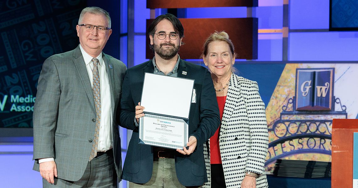 The Distinguished Researcher Award was presented to David Diemert, MD, professor of medicine and director of the GW Vaccine Research Unit. This award recognizes significant achievements in biomedical and health services research, along with mentoring and teaching contributions.